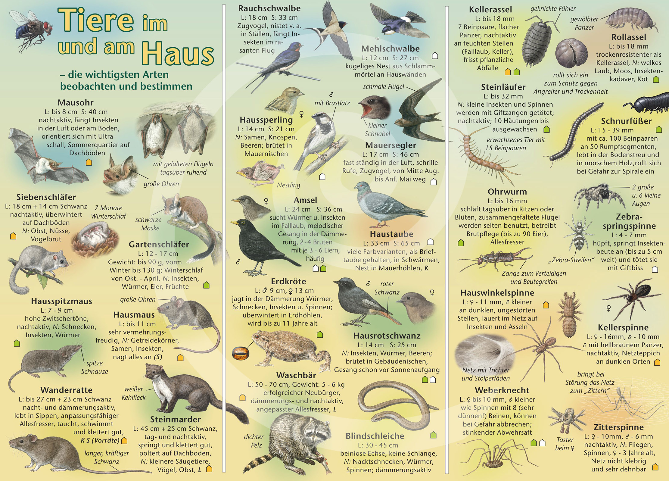 Säugetiere, Vögel, Spinnen und Insekten.